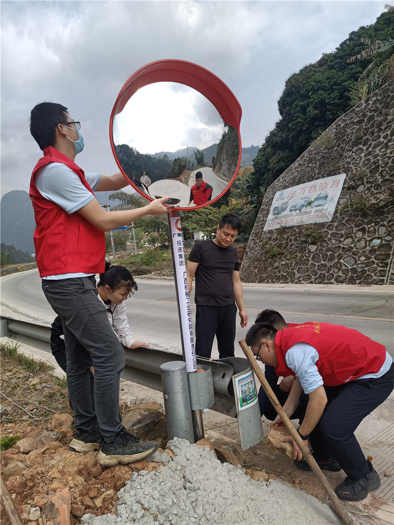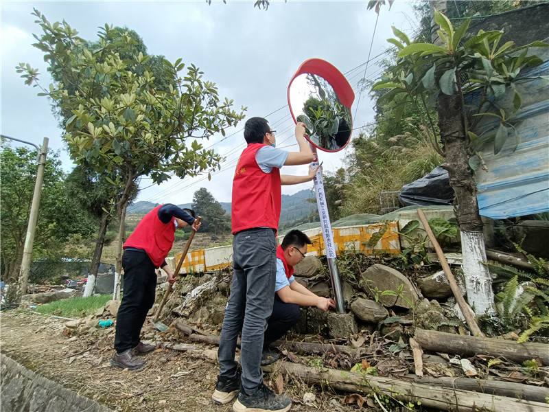 根據(jù)機(jī)械院與峰洋村在安全隱患排查工作中發(fā)現(xiàn)的問(wèn)題,志愿者團(tuán)隊(duì)在村內(nèi)5處三叉路口安裝了凸面鏡,有效解決了農(nóng)村拐彎處視線不足的交通安全隱患。