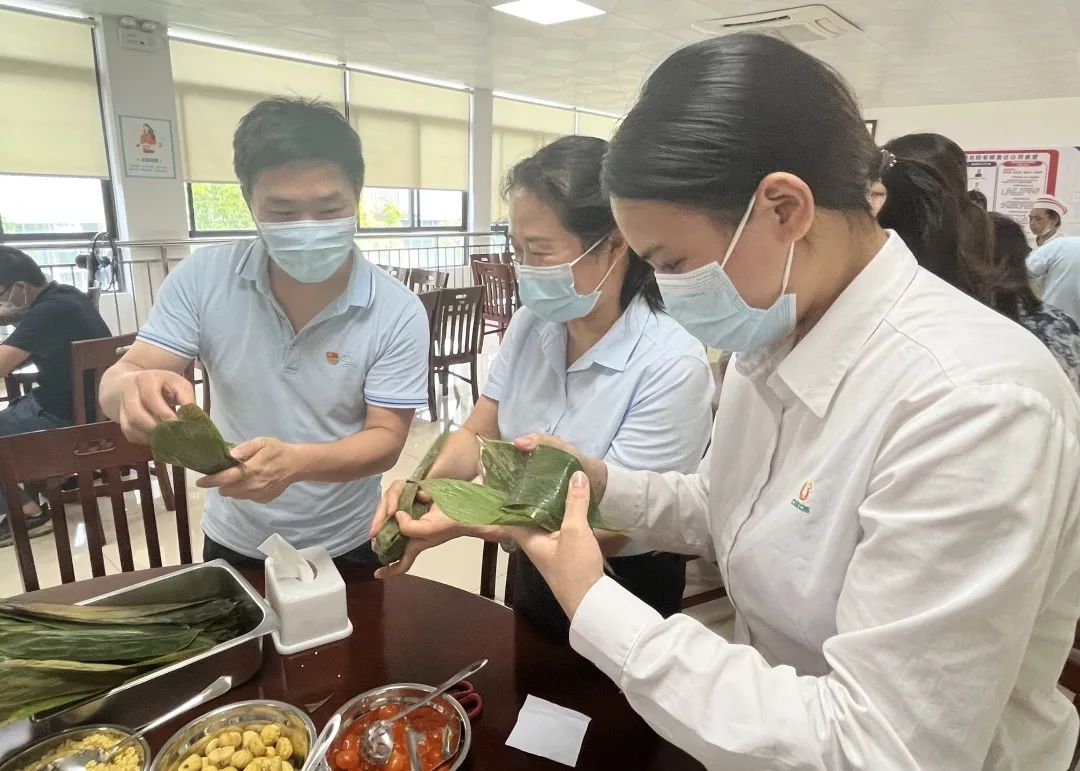 為了讓大家真正走進(jìn)端午、感知端午、品味端午,活動還組織黨員職工開展了一場別開生面的的包粽子比賽。食堂工作人員與美食養(yǎng)生興趣小組將提前泡好的糯米、綠豆、板栗、五花肉、粽葉等材料整齊地擺放在桌子上,為包粽子比賽活動做好各項準(zhǔn)備。食堂工作人員現(xiàn)場進(jìn)行包粽子“教學(xué)”,大家踴躍參與,紛紛使出看家本領(lǐng)。為了活躍氣氛,活動還進(jìn)行抽簽分組,從數(shù)量、質(zhì)量、造型三個方面進(jìn)行綜合評分。在交流中增進(jìn)職工溝通與交流,感受節(jié)日的溫馨,提升企業(yè)向心力與凝聚力。