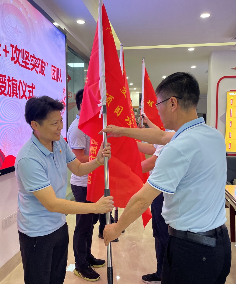 公司黨委舉行“交投先鋒+攻堅(jiān)突破”授旗儀式。公司各基層黨組織結(jié)合中心工作和重點(diǎn)任務(wù),成立了“交投先鋒+服務(wù)保障攻堅(jiān)突破”團(tuán)隊(duì)、“交投先鋒+保供應(yīng)攻堅(jiān)突破”團(tuán)隊(duì)、“交投先鋒+機(jī)電項(xiàng)目攻堅(jiān)突破”團(tuán)隊(duì)等10個(gè)攻堅(jiān)突破團(tuán)隊(duì),使每一名黨員都成為一面旗幟,把基層黨組織建成黨旗高高飄揚(yáng)的戰(zhàn)斗堡壘,助推公司各項(xiàng)業(yè)務(wù)發(fā)展。