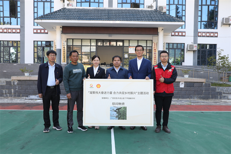 此次活動,由機械院、商貿(mào)公司牽線搭橋,攜手殼牌(中國)公司為峰洋村進(jìn)行物資捐贈。機械院下屬企業(yè)柳州格瑞米公司組織5家愛心企業(yè)捐贈了價值2.8萬元的基礎(chǔ)設(shè)施建設(shè)物資,殼牌公司、商貿(mào)公司向峰洋村捐贈了8盞太陽能路燈,幫助峰洋村解決基礎(chǔ)設(shè)施難題。