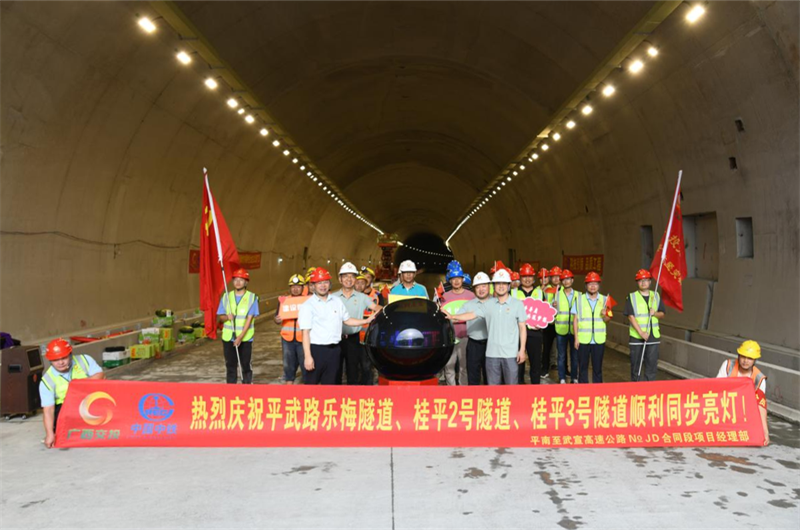 “10、9、8、7......,啟動送電!”隨著送電指令傳出,平武路樂梅隧道、桂平2號隧道、桂平3號隧道順利同步亮燈,平武路機(jī)電項(xiàng)目部歷經(jīng)15個晝夜的奮戰(zhàn),圓滿完成三座隧道同步通電亮燈的攻堅(jiān)任務(wù)。作為平武路隧道機(jī)電施工的“首件工程”,此次順利通電,標(biāo)志著平武路在實(shí)現(xiàn)年底通車總目標(biāo)的征程上又邁出了重要的一步。