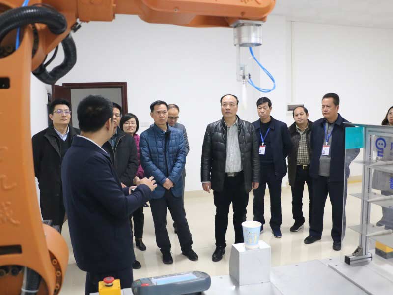 會(huì)議開始前,在院領(lǐng)導(dǎo)的陪同下,徐晶董事長(zhǎng)一行參觀了我院智能制造實(shí)驗(yàn)室、工業(yè)機(jī)器人實(shí)驗(yàn)室、3D打印體驗(yàn)室,王吉才院長(zhǎng)詳細(xì)介紹了我院發(fā)展歷程、科研成果等情況,特別對(duì)具有創(chuàng)新思維的激光內(nèi)雕數(shù)字化三維成型、數(shù)字化雙胞胎機(jī)器人咖啡吧、高壓清洗機(jī)器人、全自動(dòng)包裝碼垛機(jī)器人生產(chǎn)線等產(chǎn)品進(jìn)行了詳細(xì)講解。