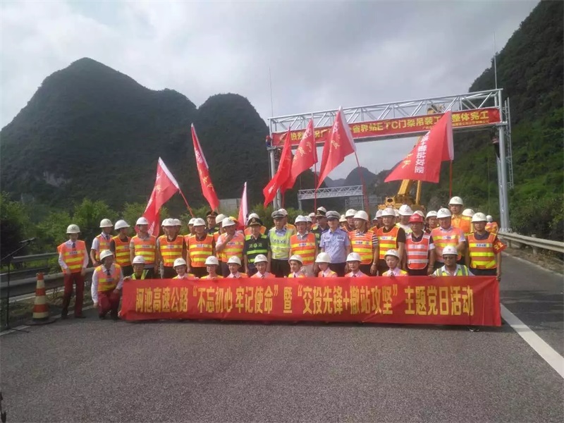 為慶祝門架工程順利完工,展現(xiàn)“不忘初心、牢記使命”主題教育成果,進(jìn)一步發(fā)揚(yáng)黨員群眾守初心、擔(dān)使命、高揚(yáng)旗幟、再創(chuàng)佳績的奮斗精神,機(jī)械院公司黨委聯(lián)合柳州公司黨委組織開展“交投先鋒+攻堅(jiān)突破”主題黨日活動(dòng)暨龍門架吊裝完工儀式,柳州運(yùn)營公司、廣西交科院、交警、路政、監(jiān)理等有關(guān)單位20余人參加活動(dòng)。
