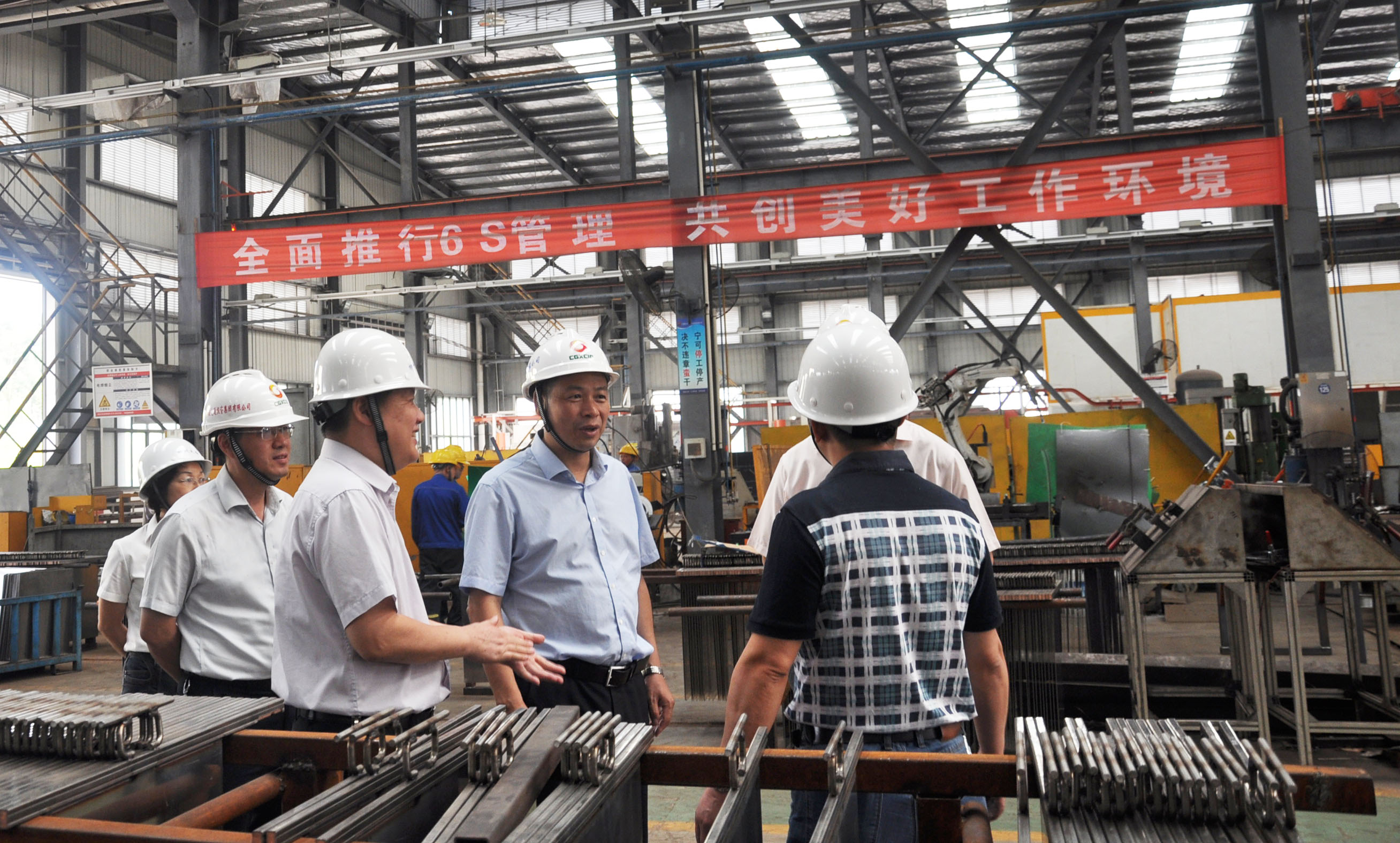 覃衛國總經理先是深入生產一線詳細了解車間現場龍門架、立磨、陰極板、入口治超標志牌等產品的生產情況、產品工藝、質量情況、現場安全管理情況等,之后到會議室進行調研座談。