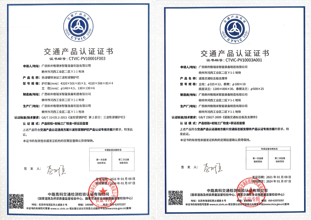 CTVIC的實際控股人是交通運輸部直屬事業單位,是公路交通行業唯一一家具備檢測檢驗認證綜合能力的第三方合格評定機構,其認證條件要求非常高,只有管理及技術水平在行業內均處于領先地位的企業才可能獲得CTVIC認證證書。此次順利通過CTVIC交通產品認證,是對柳州格瑞米公司產品質量和管理水平的高度認可,標志著公司認證產品質量達到了交通運輸行業的要求。