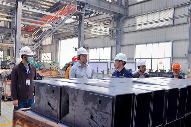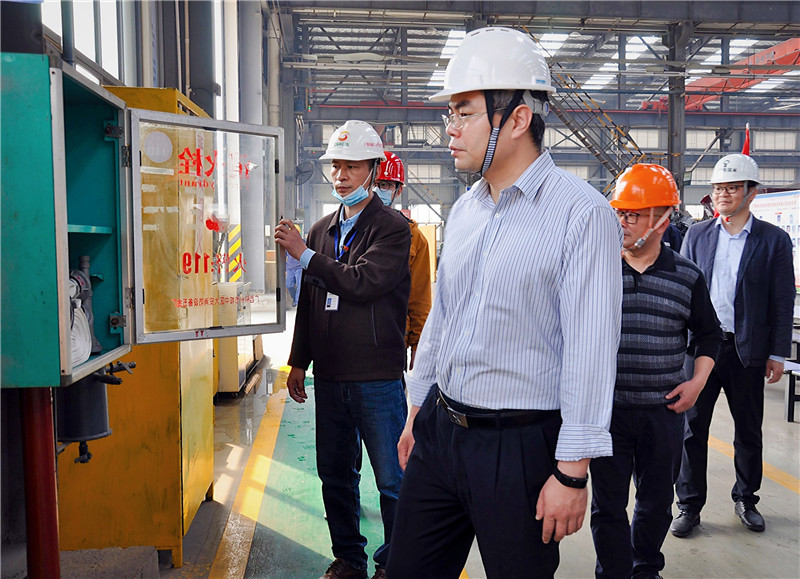 在公司執行董事張美義、總經理周立的陪同下,于福堅區長一行深入車間生產現場詳細了解了鋼護攔、立式磨機、陰極板、汽車配件等產品的生產情況,檢查了車間的現場消防設施、用電設施、安全通道、安全警示標志標識等安全措施。