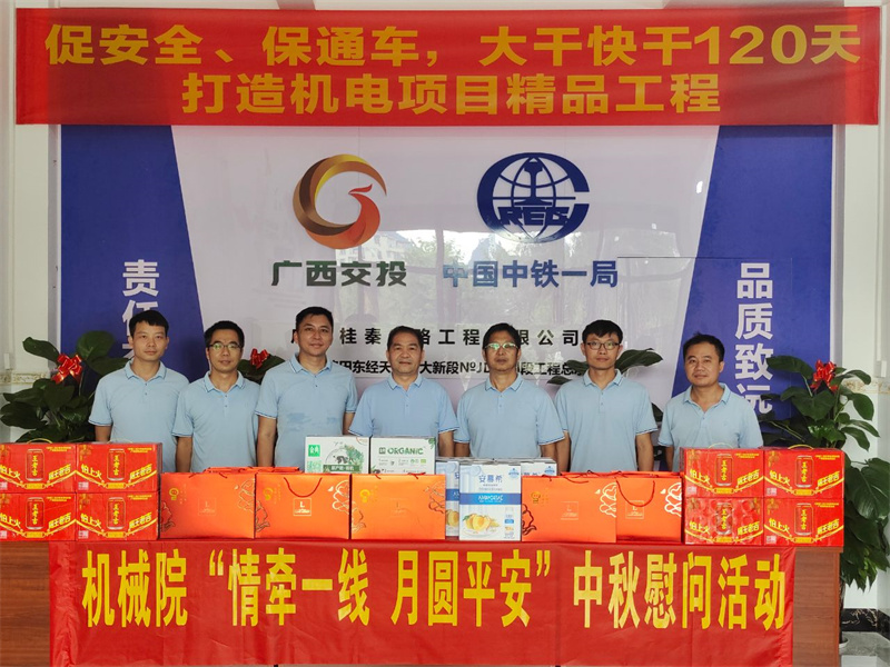 丹桂飄香,情滿月圓。在中秋團圓的節(jié)日里,機械院各重點項目人員依然奮戰(zhàn)在建設(shè)一線,趕工期、抓質(zhì)量、搶進度、保生產(chǎn)。為將“暖心交投”職工滿意行動落到實處,進一步弘揚奉獻精神,讓堅守一線的員工們度過一個溫暖祥和的中秋節(jié),在中秋佳節(jié)來臨之際,機械院領(lǐng)導(dǎo)班子成員到各項目部開展“情牽一線 月圓平安”中秋慰問和節(jié)前安全檢查。