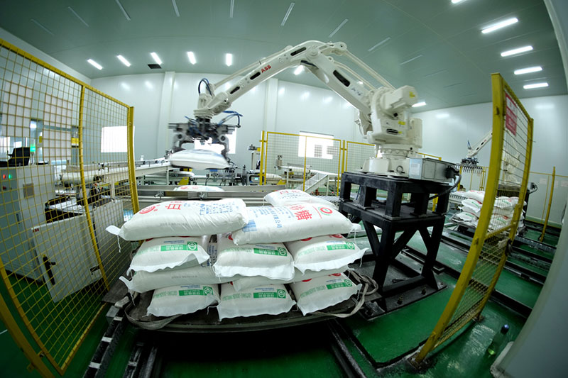 我院自主研發(fā)的全自動(dòng)包裝碼垛機(jī)器人生產(chǎn)線可用于制糖、食品、飼料、化肥、淀粉、化工、醫(yī)藥、納米碳酸鈣等行業(yè)粉料、顆粒物料的傳統(tǒng)套裝式可分離內(nèi)外袋自動(dòng)化包裝,實(shí)現(xiàn)將內(nèi)袋封口后置入外袋,然后自動(dòng)縫合外袋,包裝全密封,無針眼,屬世界首創(chuàng)。