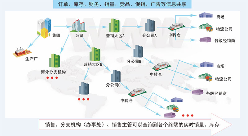 分銷管理信息系統(tǒng)針對大中型企業(yè)分銷業(yè)務(wù)管理特點,全面支持訂單、庫存、配送、財務(wù)、營銷活動、市場活動、價格管理等企業(yè)分銷業(yè)務(wù)職能,實現(xiàn)包含總公司、營銷大區(qū)、分公司、辦事處、供應(yīng)商、經(jīng)銷商、分銷商、連鎖店/專賣店/專柜等企業(yè)多個經(jīng)濟單元組織的多層次分級集中管理。具備電子商務(wù)功能,支持網(wǎng)上訂單處理,彈性的行業(yè)自定義功能,具有良好的可擴展能力。