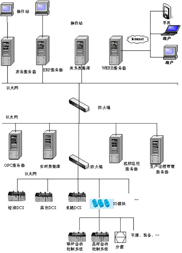系統(tǒng)分為體系結(jié)構(gòu)ERP/MES/PCS三個層次的,MES中間層在對上的ERP層提供數(shù)據(jù)資源和接口,對下的PCS層可以靈活擴展接入,完成生產(chǎn)過程自動化控制、生產(chǎn)過程管理、企業(yè)經(jīng)營管理信息化等目的。